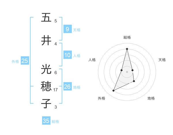 五井 光穂子さんの総格は35画の4点!