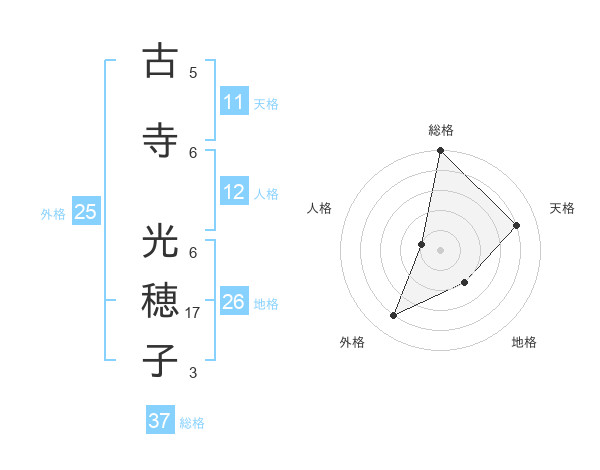 古寺 光穂子さんの総格は37画の5点!