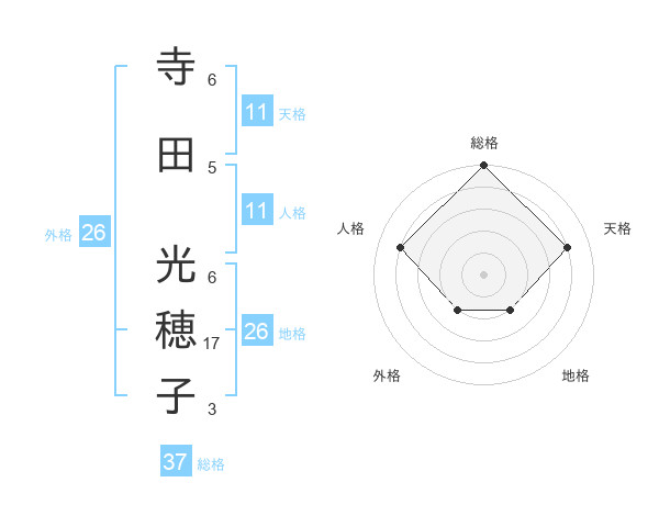 寺田 光穂子さんの総格は37画の5点!