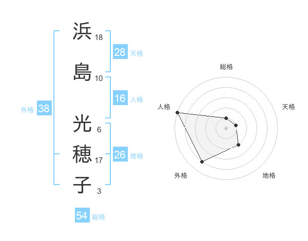 浜島 光穂子さんの外格は38画の4点