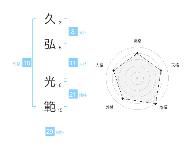 久弘 光範さんの総格は29画の4点!