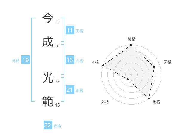 今成 光範さんの地格は21画の5点!