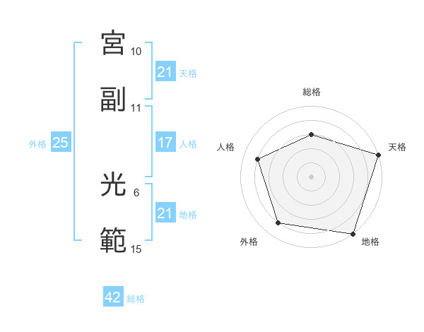 宮副 光範さんの地格は21画の5点!