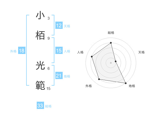 小栢 光範さんの総格は33画の4点!