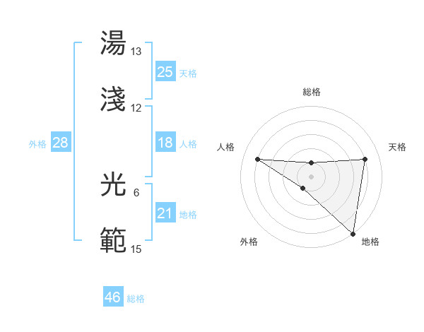 湯淺 光範さんを姓名の画数から五運を鑑定