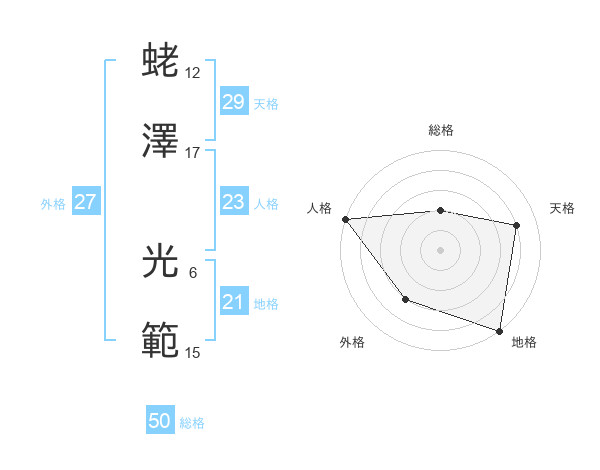 蛯澤 光範さんを姓名の画数から五運を鑑定