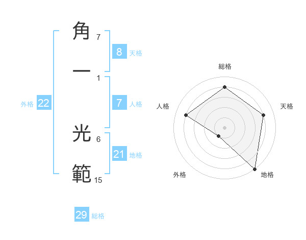 角一 光範さんの地格は21画の5点!
