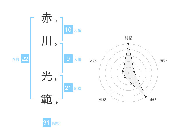赤川 光範さんの総格は31画の5点!