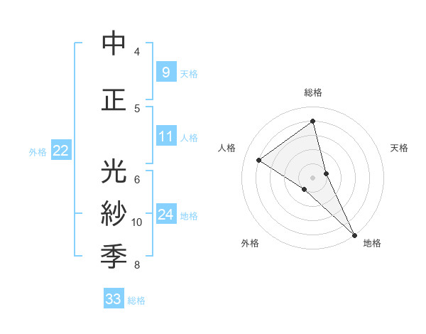 中正 光紗季さんを姓名の画数から五運を鑑定