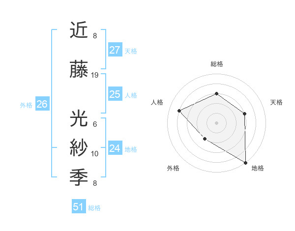 近藤 光紗季さんの総格は51画の3点!
