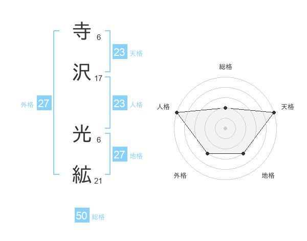 寺沢 光絋さんの天格は23画の5点!