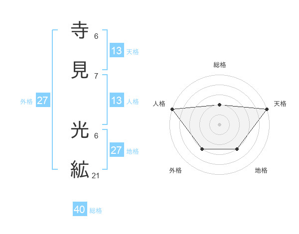 寺見 光絋さんを姓名の画数から五運を鑑定