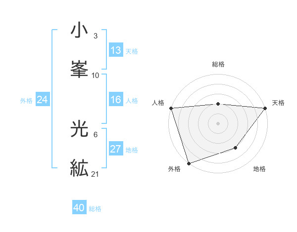 小峯 光絋さんの天格は13画の5点!