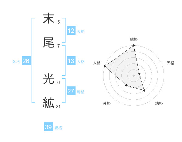 末尾 光絋さんを姓名の画数から五運を鑑定