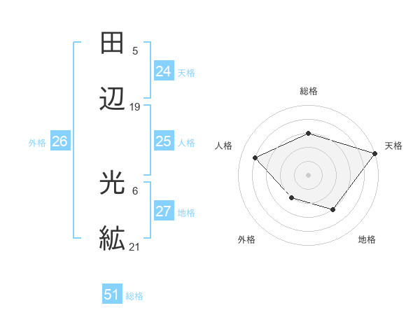 田辺 光絋さんを姓名の画数から五運を鑑定