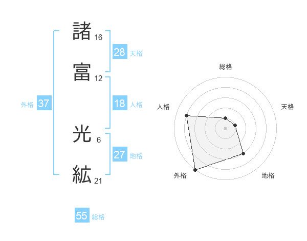 諸富 光絋さんの総格は55画の1点!