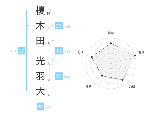 榎木田 光羽大さんを姓名の画数から五運を鑑定