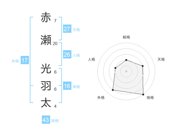 赤瀬 光羽太さんの総格は43画の2点!