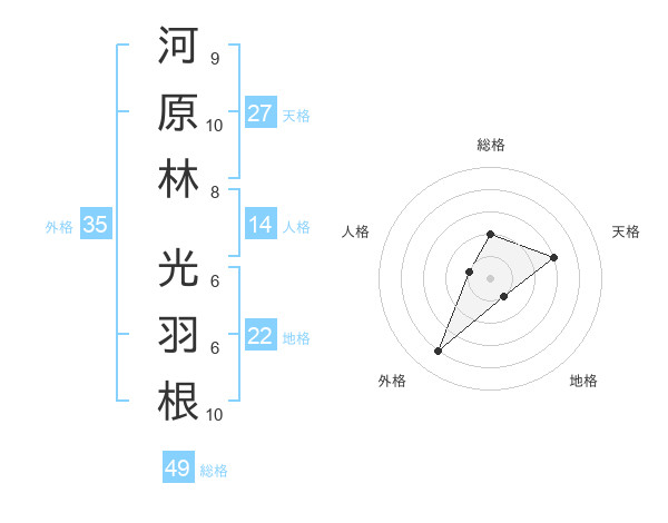 河原林 光羽根さんを姓名の画数から五運を鑑定