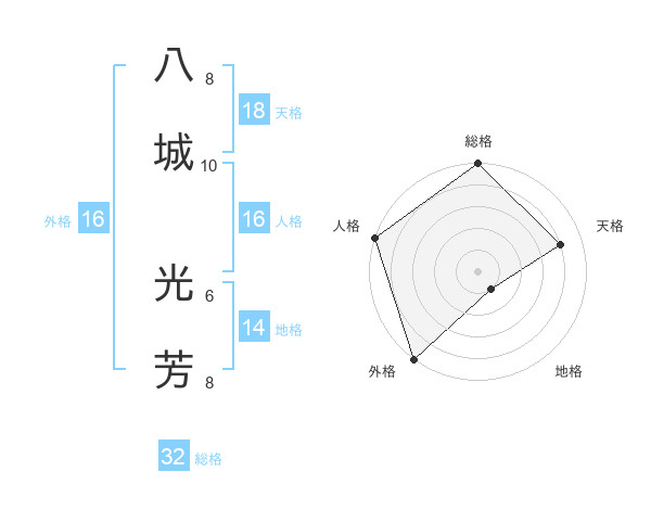 八城 光芳さんの総格は32画の5点!