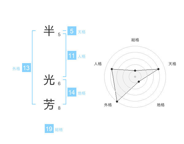 半 光芳さんの外格は13画の5点!