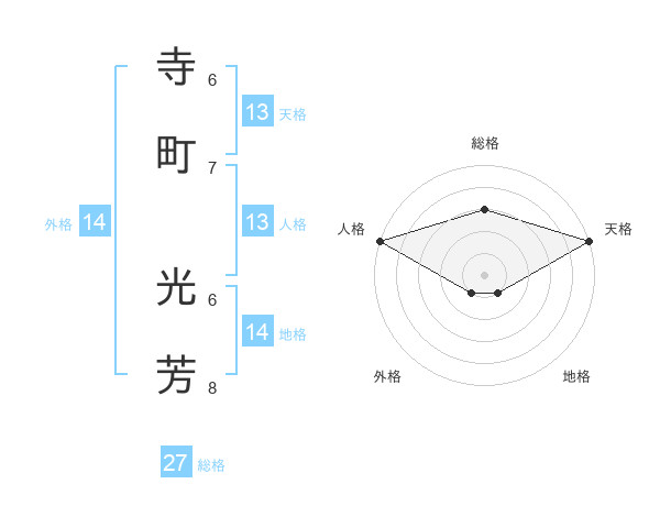 寺町 光芳さんの天格は13画の5点!