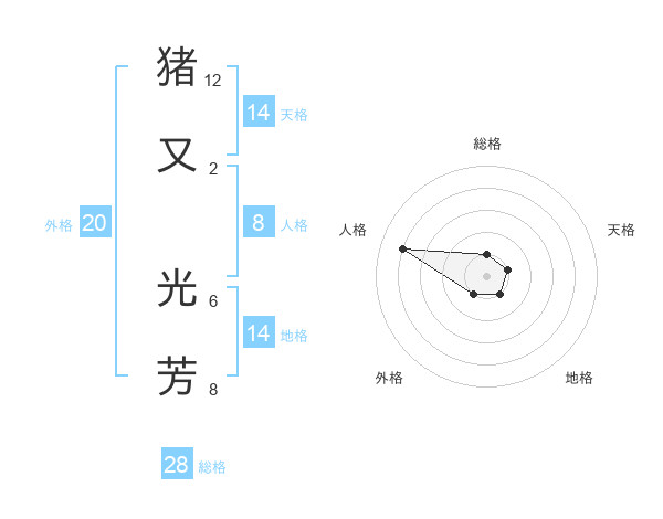 猪又 光芳さんを姓名の画数から五運を鑑定