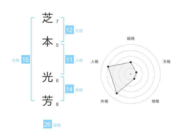 芝本 光芳さんの総格は26画の2点!