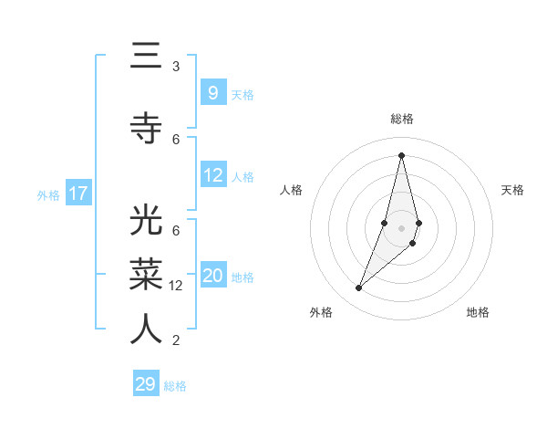 三寺 光菜人さんの総格は29画の4点!