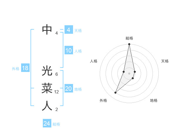 中 光菜人さんの総格は24画の5点!
