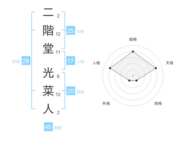二階堂 光菜人さんの総格は45画の4点!