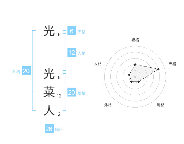 光 光菜人さんの総格は26画の2点!