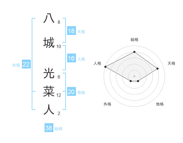 八城 光菜人さんの総格は38画の4点!
