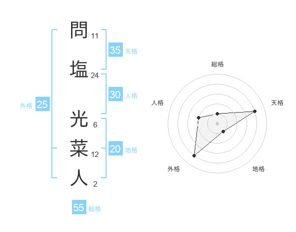 問塩 光菜人さんを姓名の画数から五運を鑑定