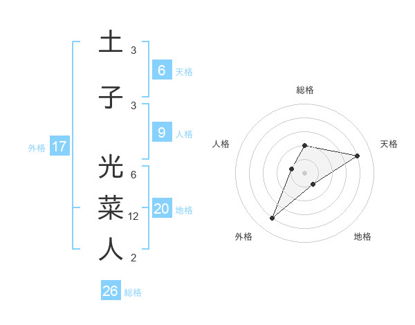 土子 光菜人さんの総格は26画の2点!