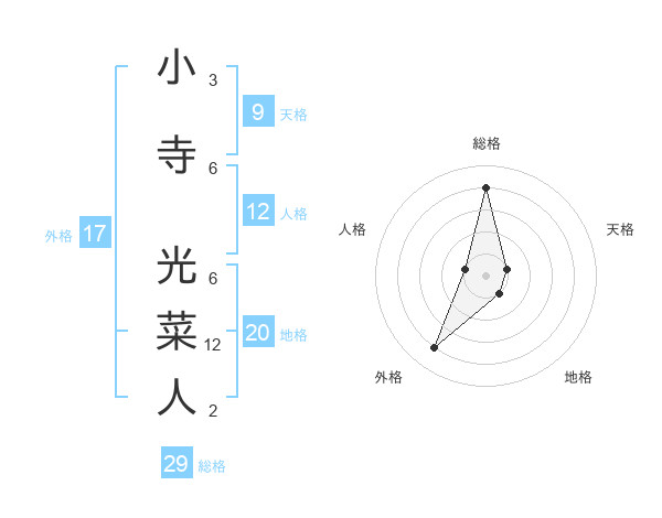 小寺 光菜人さんの総格は29画の4点!