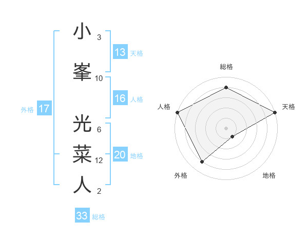 小峯 光菜人さんを姓名の画数から五運を鑑定