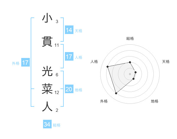 小貫 光菜人さんを姓名の画数から五運を鑑定
