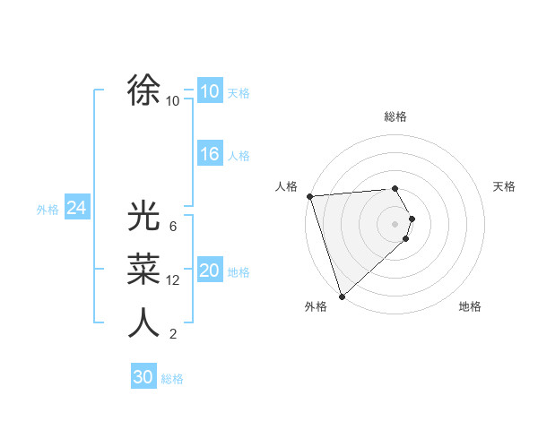 徐 光菜人さんの総格は30画の2点!