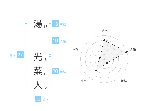 湯 光菜人さんを姓名の画数から五運を鑑定