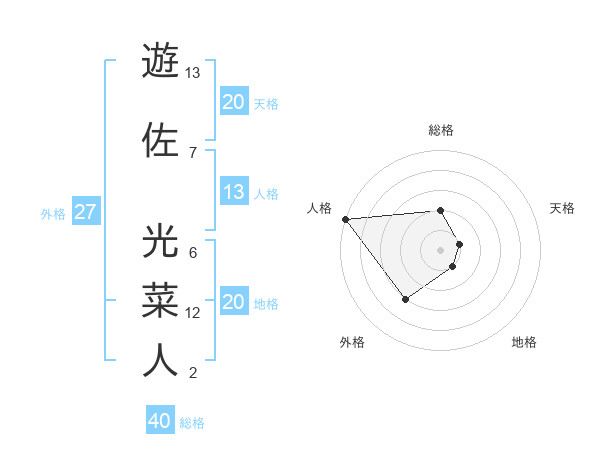 遊佐 光菜人さんの総格は40画の2点!