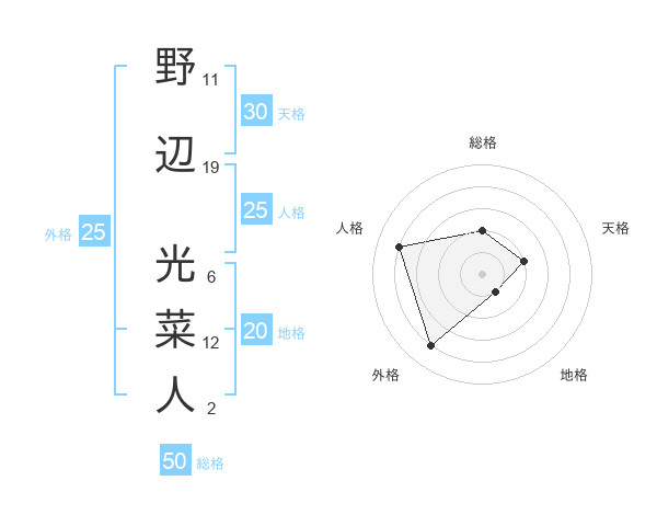 野辺 光菜人さんを姓名の画数から五運を鑑定