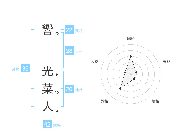 響 光菜人さんの総格は42画の3点!