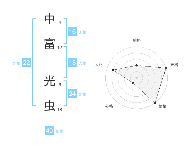 中富 光虫さんの総格は40画の2点!