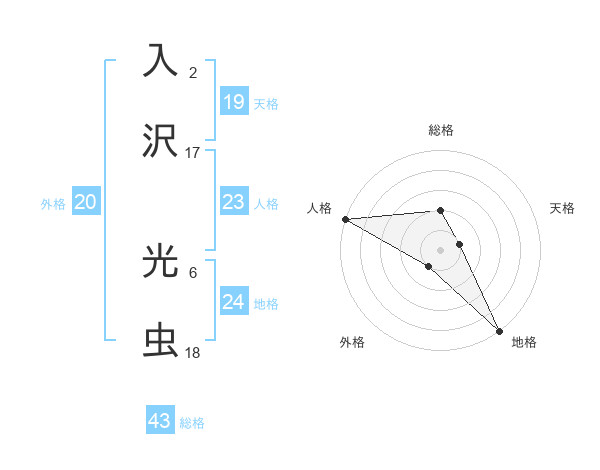 入沢 光虫さんの総格は43画の2点!
