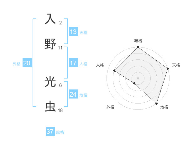 入野 光虫さんの総格は37画の5点!