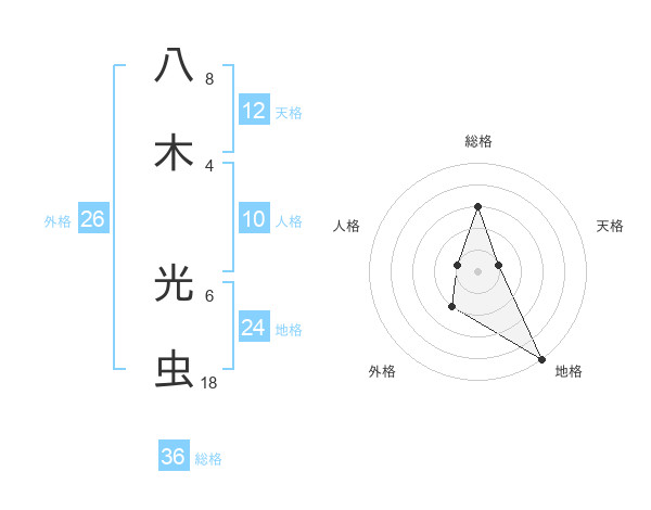 八木 光虫さんの総格は36画の3点!
