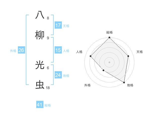 八柳 光虫さんの総格は41画の5点!