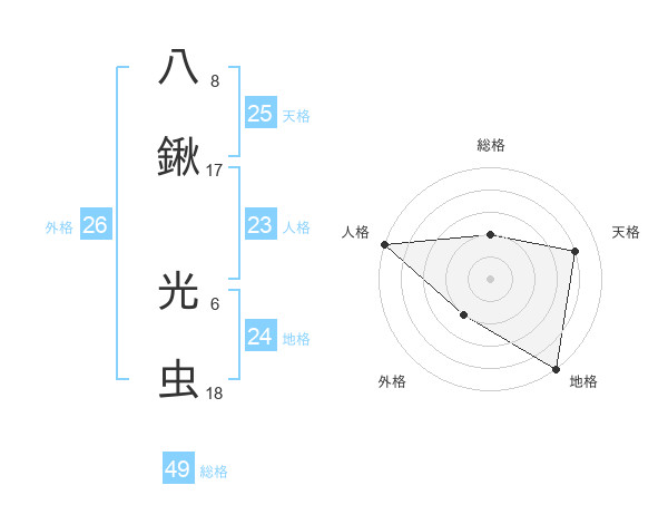 八鍬 光虫さんの総格は49画の2点!