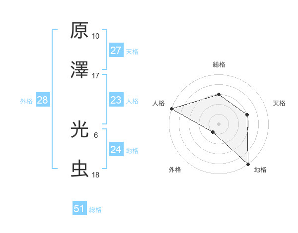 原澤 光虫さんの総格は51画の3点!